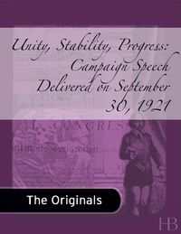Unity, Stability, Progress: Campaign Speech Delivered on September 30, 1921