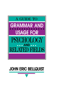 A Guide To Grammar and Usage for Psychology and Related Fields