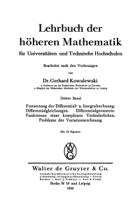 Fortsetzung der Differential- und Integralrechnung, Differentialgleichungen, Differentialgeometrie, Funktionen einer komplexen Veränderlichen, Probleme der Variationsrechnung