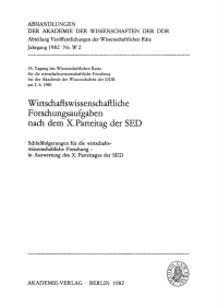 Wirtschaftswissenschaftliche Forschungsaufgaben nach dem X.Parteitag der SED