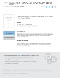 Experimentation and Evaluation Plans for the 2010 Census: Interim Report 著者: ; ; ; 出版 National Academies Press. 以下のデジタルおよびeTextbook ISBNs: Experimentation and Evaluation Plans for the 2010 Census : 9780309115469, 0309115469 および 印刷版のISBNは 9780309115452, 0309115450. VitalSource でデジタル化することで、印刷に比べて最大 80% 節約できます。