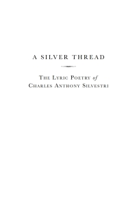 The Lyric Poetry of Charles Anthony Silvestri