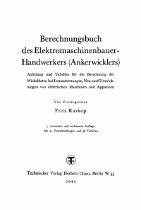 Anleitung und Tabelle für die Berechnung der Wickeldaten bei Instandsetzungen, Neu- und Umwicklungen von elektrischen Maschinen und Apparaten