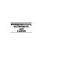 Hermeneutics, Authority, and Canon