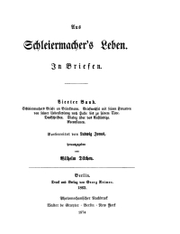 Schleiermachers Briefe an Brinckmann - Briefwechsel mit seinen Freunden von seiner Übersiedlung nach Halle bis zu seinem Tode - Denkschriften - Dialog über das Anständige - Rezensionen