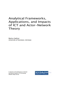 Analytical Frameworks, Applications, and Impacts of ICT and Actor-Network Theory
