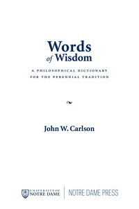 A Philosophical Dictionary for the Perennial Tradition