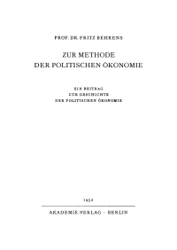 Zur Methode der politischen Ökonomie