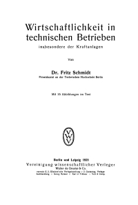 Wirtschaftlichkeit in technischen Betrieben insbesondere der Kraftanlagen