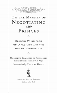 On The Manner Of Negotiating With Princes