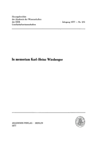 In memoriam Karl-Heinz Wirzberger