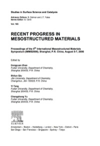 Recent Progress in Mesostructured Materials: Proceedings of the 5th International Mesostructured Materials Symposium (IMMS 2006) Shanghai, China, August 5-7, 2006