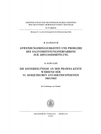 Karbaum, H.: Anwendungsmöglichkeiten und Probleme des Salzverdünnungsverfahrens zur Abflussermittlung. Schulze, O.: Die Eisverhältnisse an der Prawda-Küste während der VI. sowjetischen Antarktisexpedition 1961