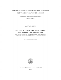Beiträge zur D- und V-Struktur von Wasser und speziellen Wässrigen Elektrolytlösungen